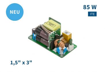 Die kompakte Open Frame Netzteilserie B13085 von Power-Win liefert bis zu 85 Watt Ausgangsleistung (belüftet) - bei reiner Konvektionskühlung sind bis zu 65 Watt möglich.